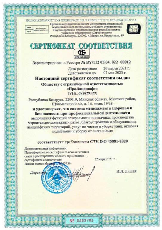 Важно: в 2020 году введен в действие СТБ ISO 45001-2020 «Системы менеджмента здоровья и безопасности при профессиональной деятельности. Требования и руководство по применению», который заменяет СТБ 18001-2009 «Системы управления охраной труда. Требования». С 30 сентября 2021г. сертификаты соответствия требованиям СТБ 18001-2009 НЕДЕЙСТВИТЕЛЬНЫ!